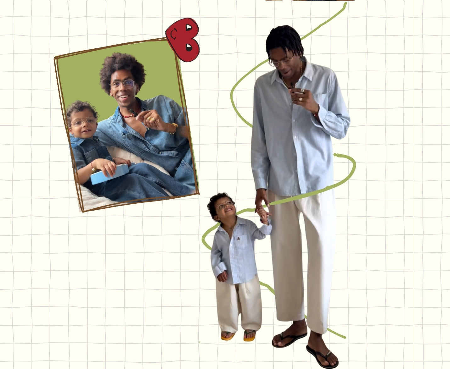 “Playful but polished. I lean into neutrals andearthy tonesbecause that’s my lane, but I’ll throw in pops of color when it feels right. Honestly,his wardrobe feels like a mini extension of mine.”